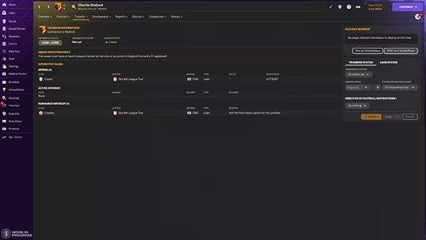 如今,对您的球员表现出兴趣的俱乐部会被分类为“积极”或“传闻”,而不再是以前的“主要兴趣”或“次要兴趣”,此外,您还可以看到这些俱乐部被归类的原因。例如,当您的球员不再是意向俱乐部某个位置上的首要追求目标,那它将被归类为“传闻”。