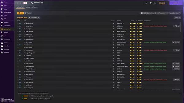 我们对国家队人才库的界面进行了一系列更新,让各位经理更清楚有哪些球员可供国家队征召。
