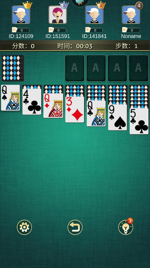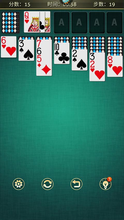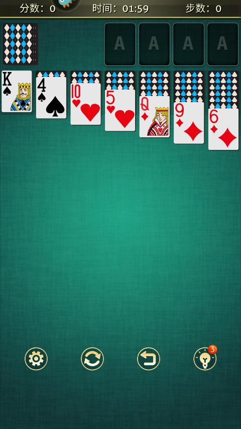 3、拖放纸牌、自动完成已解出的游戏、显示得分、步数和时间。