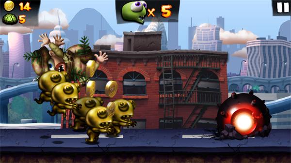 僵尸尖叫就像其他跑酷类的游戏,游戏只有起点,没有终点,没有所谓的过关只有无尽的杀戮