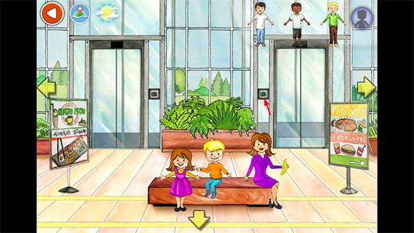 1、首先打开娃娃屋plus全新版全部解锁版游戏,来到电梯口,跟我们现实中一样,点击按钮可以开门;