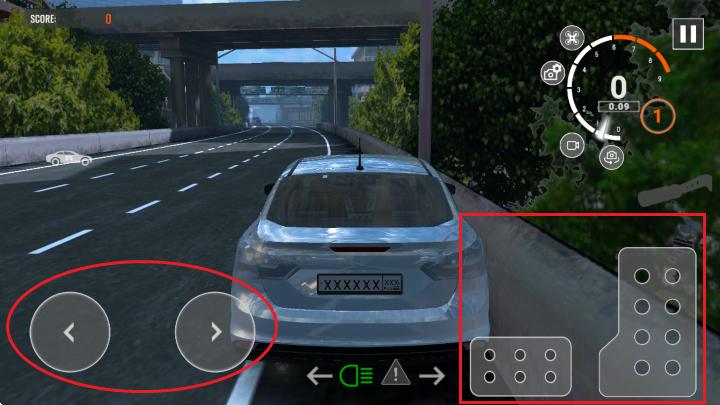 操作较为简单,通过触摸屏幕左下角的【<>】来控制车辆的转向,轻触加油按钮可加速,轻触制动按钮则减速.