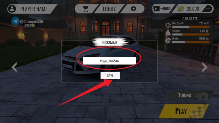 1、进入游戏后,首先请创建一个游戏名称,如图所示,然后点击【save】