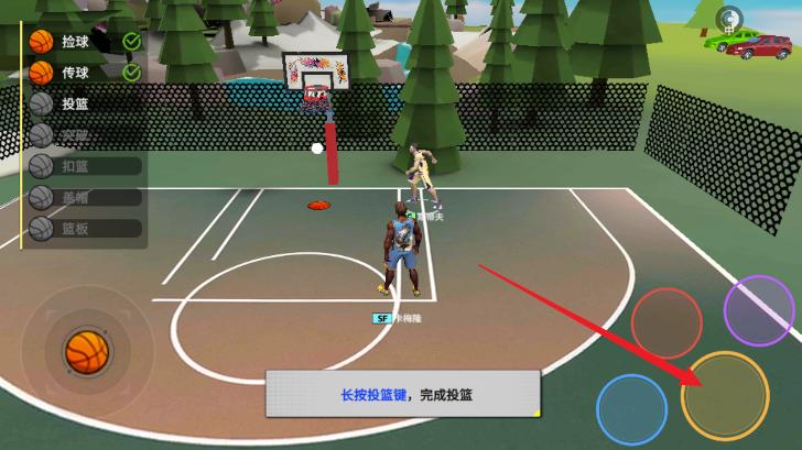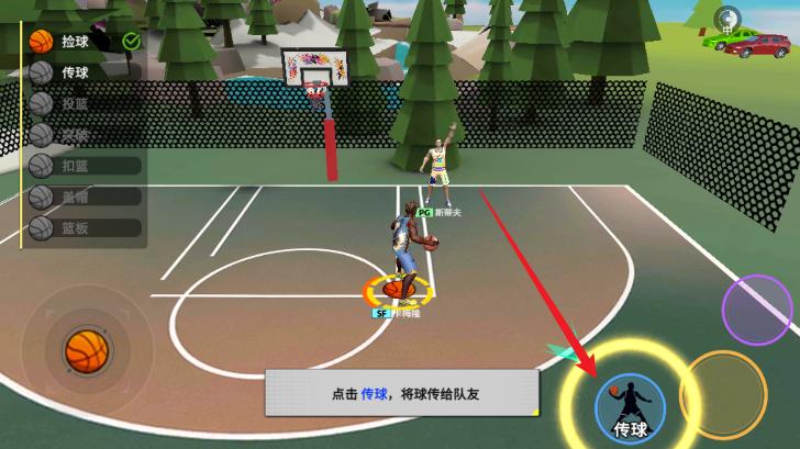 玩法描述:玩家可以与其他玩家进行实时对战,体验激烈的1v1、2v2或者3v3街头篮球比赛。每场比赛都是真实的竞技对抗,需要玩家精准操作、快速反应以及灵活运用战术。玩家可以通过操作球员进行运球、传球、投篮、抢断、盖帽等操作,尽力在比赛中占据优势。