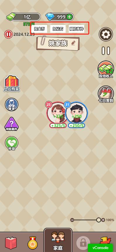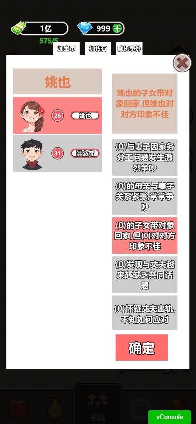 游戏目标:为家族的延续做大做强,玩家需在游戏中不断 的赚钱,生孩子,培养后代,多子多福,将自己的家族发扬光大,与各大家族登上排行榜一决高下