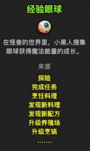 A:经验眼球的作用是升级餐厅。最快速获得经验眼球的方法就是升级锅子,等级越高升级获得的眼球越多,当然相应的升级眼球需要的也越多,另外魔法眼球还可以通过其它方法获得。