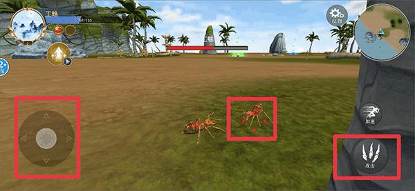 1、进入游戏后通过左边的摇杆控制蜘蛛移动到猎物前后,使用攻击按钮将猎物猎杀