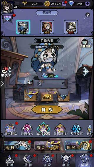玩家进入游戏后,在主页面中可以看到包括梦游仙境,幻境试炼等活动。选择幻境试炼活动进入后可查看详细活动内容。通过选择多种级别的关卡挑战,其中包括简单,困难和噩梦。当选择不同的关卡可以看见推荐的战力值和击败首领可以获得的奖励信息。幻境试炼活动以7天为准,每天可以挑战一轮关卡,一共可以挑战7轮,在限定的时间内通关当前轮数难度的关卡,可以获得对应的奖励。