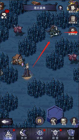 2、第二步:与森林之风的使者进行对话,对话结束后需要上阵5位风系伙伴,击败使者;如果风系伙伴数量不够,可以在左上方的小酒馆招募1位风系伙伴;