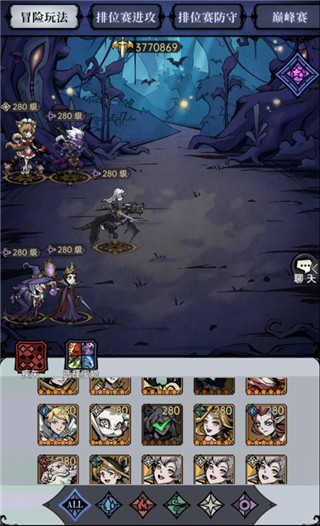 2、【强力阵容】:暗黑骑士(前排肉盾)、魔镜王后(核心输出)、邪魔悟空(核心输出)、搭配强力辅助疯外婆、女仆苏菲,简直无敌于天下