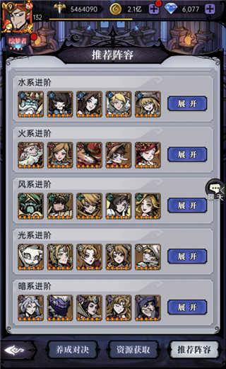 1、冒险者们在城堡里面召唤伙伴,可以在界面右上角的推荐栏里面查看推荐阵容,根据自身目前拥有的伙伴或想走的阵容路线进行选择。