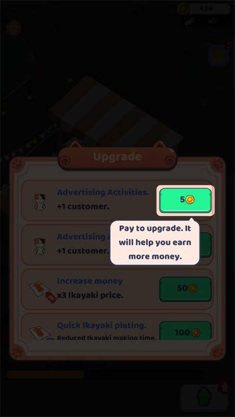 6、可以利用金币打广告,招揽更多顾客,帮助你赚更多的钱;