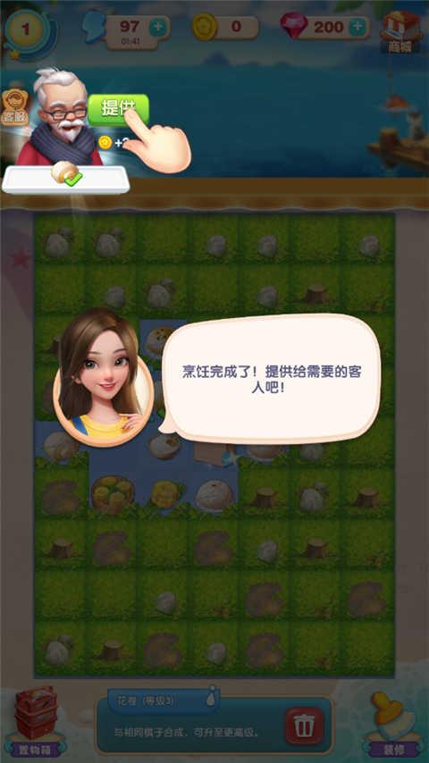 1、完成订单,可获得“水滴”棋子,可以直接双击收集,也可合至更高等级后收集,收获更多“水滴”。