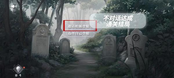第三个场景——正常收集所有的线索,思考过程同成功结局图示,不要与柏源对话,最后"邀请柏源登船"达成通关结局.