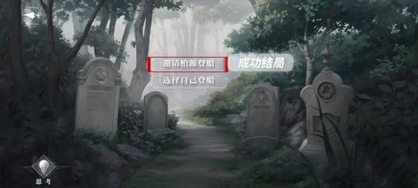 接着与柏源对话"询问其身份"—"分享调查名单"—"走进"墓园深处—墓碑处"查看碑文",解密过程如下图