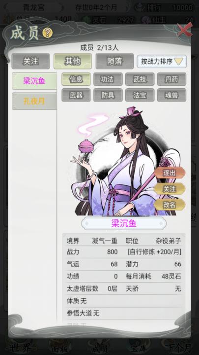 世外绝世高人游戏是一款打破常规的修仙宗门模拟游戏。在这里,宗门发展不再循规蹈矩,你能自由探索独特修炼体系,解锁稀奇古怪的功法法宝。招募性格迥异的弟子,培养他们走上别样修仙路。还能与其他宗门展开奇妙互动,或是结盟共赢,或是激烈争斗。在充满奇幻与未知的世界里,书写属于你的宗门传奇!
