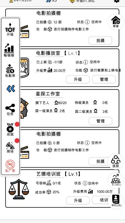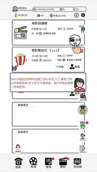 1、题材丰富的模拟经营游戏,来帮你完成导演的梦想,多种玩法等你体验。