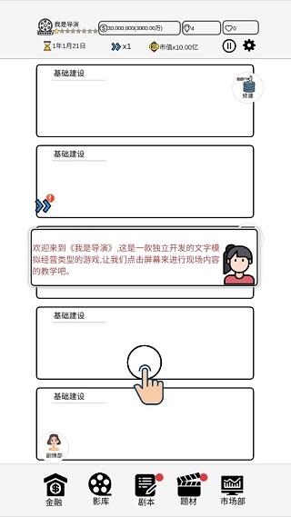 我是导演游戏是一款模拟经营的游戏,在游戏中你扮演一个导演的角色,努力的培养自己的艺人,游戏中有20多种电影题材和上百部电影剧本,2000多个不同等级的艺人,多元化的发展思路,你可以组建自己的乐队和相声组合来进行商业表演,你可以随意发挥拍摄出自己想要的电影,还有惊心动魄的随机事件来等着你体验哦!