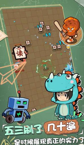 1、这是一款已校园题材为风格的roguelike休闲弹幕类游戏,一年级一个关卡;