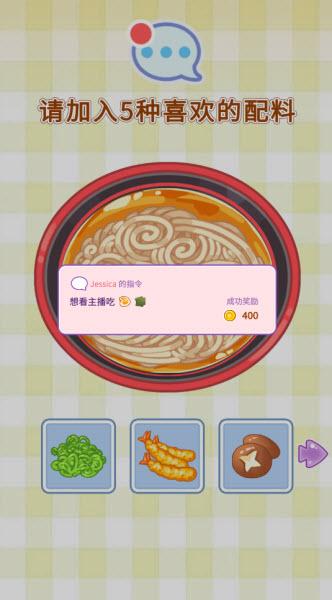 7、撒入酱汁和配料,屏幕中会出现直播间观众想看到的配料,可以根据指示加入。