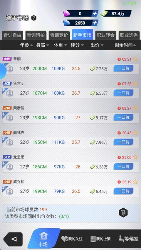 新手市场在前期非常重要,当职业队球员不够时,可以到新手市场一口价补满球队,等后面提拔青训队自己培养的球员慢慢来替代掉。