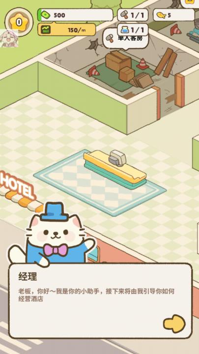 1、跟随任务指引,快速解锁新设施和特殊猫咪,加速旅馆发展,提供高质量服务。