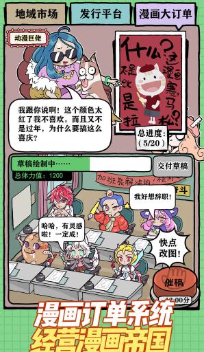 现在你就可以选择自己所喜欢的漫画角色进行创造了,一旦火爆起来,你不仅可以获得数不尽的财富,而且还会拥有超高的人气流量,这将是一个非常烧脑的过程,但是你可以招募一些漫画家来进行创造,