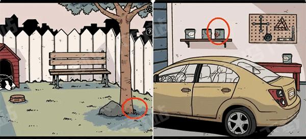 4、在后院拿走树根处的铁铲,然后到车库用其打开架子上的颜料罐拿到钥匙。