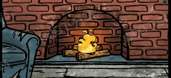 11、来到沙发处将木头放在壁炉里点燃(改变卡丽莎视角下的场景),接着组合鱼钩鱼线和皮皮虾在新出现的钓坑中钓起一只鱼。