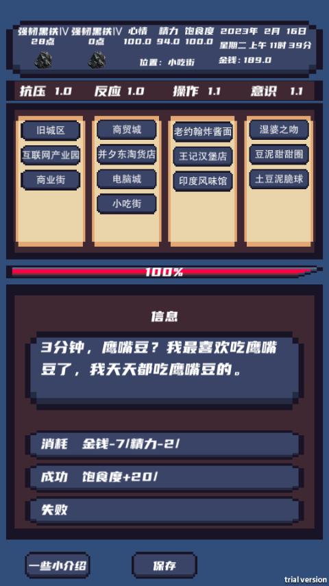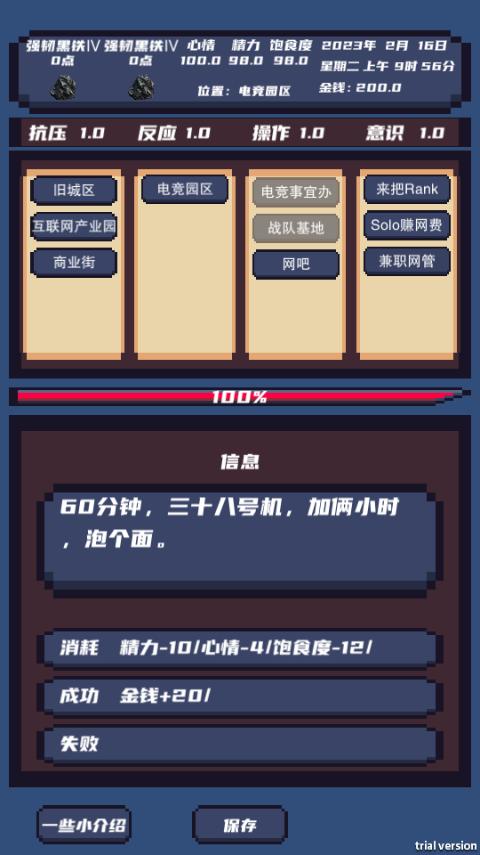 4、玩累了去网吧泡60分钟,金钱和饱食度都大幅增加。