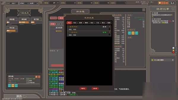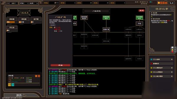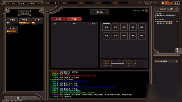你需要带领你的弟子在这个江湖世界里历练探索,获得独特的机缘,以及通过不断经营不同产业、招募更多的弟子等来更好的发展自己的势力,提升实力,还可以与不同门派势力进行互动,