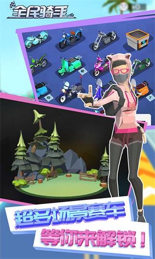 1、个性鲜明的角色,清新的画风,炫酷的特效,还有各式各样的拉风摩托车等你来选择。